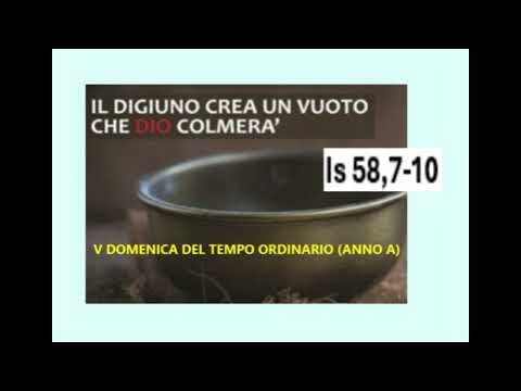 Così dice il Signore:«Non consiste forse [il digiuno che voglio]nel dividere il pane con l’affamato,nell’introdurre in casa i miseri, senza tetto,nel vestire uno che vedi nudo,senza trascurare i tuoi parenti?Allora la tua luce sorgerà come l’aurora,la tua ferita si rimarginerà presto.Davanti a te camminerà la tua giustizia,la gloria del Signore ti seguirà.Allora invocherai e il Signore ti risponderà,implorerai aiuto ed egli dirà: “Eccomi!”.Se toglierai di mezzo a te l’oppressione,il puntare il dito e il parlare empio,se aprirai il tuo cuore all’affamato,se sazierai l’afflitto di cuore,allora brillerà fra le tenebre la tua luce,la tua tenebra sarà come il meriggio».